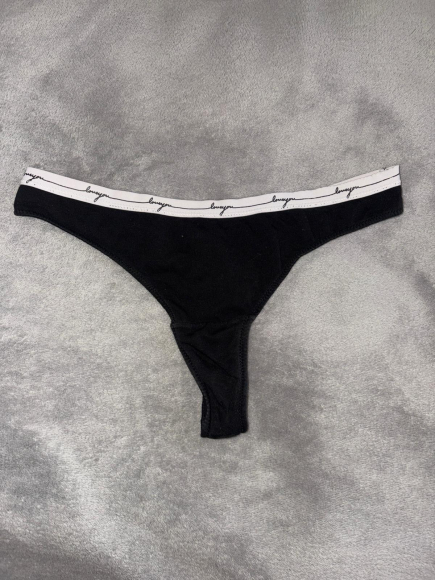 Schwarzer Tanga mit weißem Bund