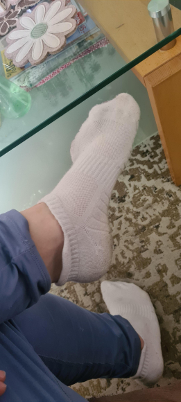 Ich verkaufen meine getragene Bunten & Weiße Sneaker Socken.