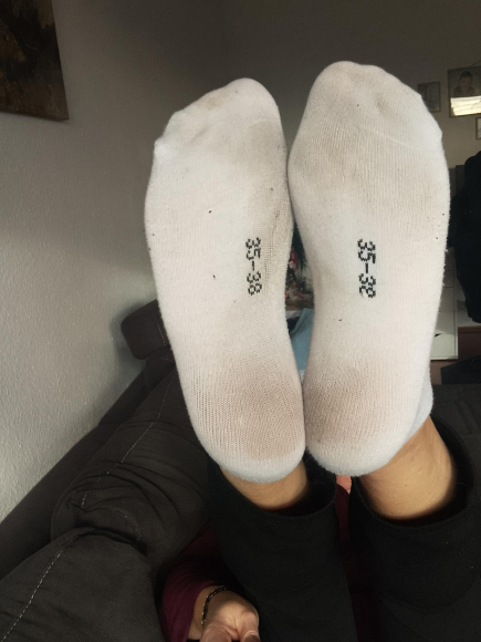 Weiße Sneakersocken suchen neuen Besitzer mit Geruchsvorliebe