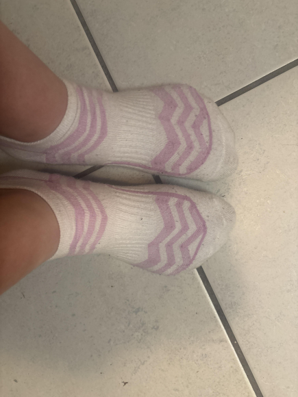 Helle Socken mit lilanen Muster 5 tage getragen auf Wunsch auch länger möglich.