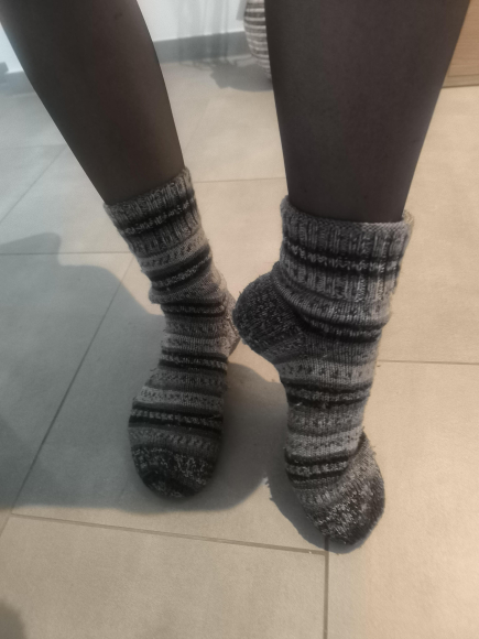 Selbstgestrickte getragene Socken