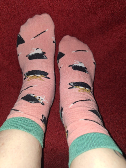 Magische rosa Socken mit Hasen im Zauberhut – weich & authentisch getragen
