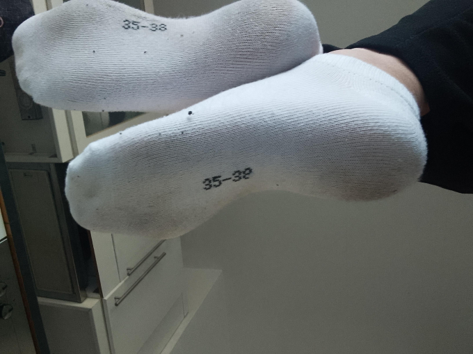 Weiße Sneakersocken suchen neuen Besitzer mit Geruchsvorliebe